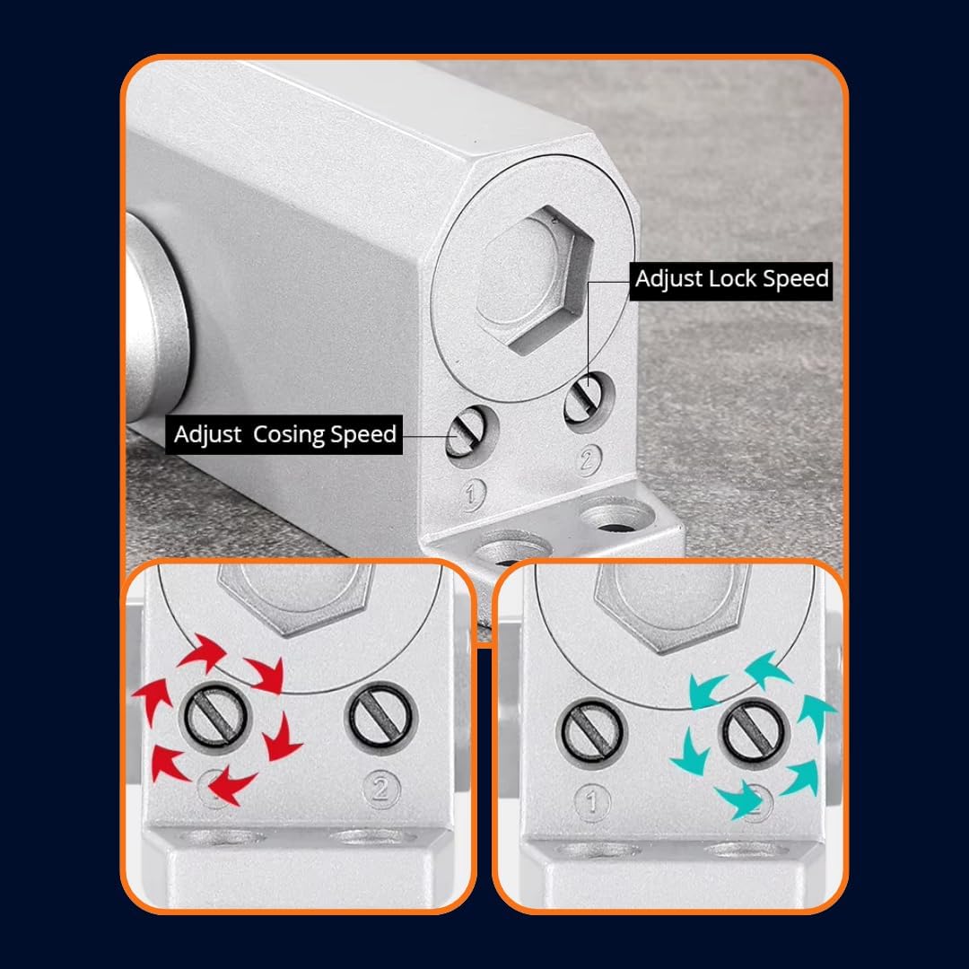 Crafted from aluminum alloy and carbon steel, this door closer is built to last. The materials ensure durability against daily wear and tear, as well as corrosion resistance, which is essential in humid or high-traffic environments. Its robust build guarantees that it will withstand thousands of opening and closing cycles without performance degradation.